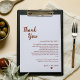 Thank you table card for the wedding reception. The template has several lines for your personalized thank you message. Minimalist calligraphy, black and white color typography.