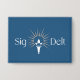 This distinguished design prominently features the official emblem of the Sigma Delta Tau sorority. At its center, a stylized torch radiates light outward in a bold sunburst pattern, symbolizing enlightenment and shared brilliance. The design gracefully incorporates partial text, subtly representing the sorority's name around the central emblem. This powerful representation embodies Sigma Delta Tau's enduring spirit, sisterhood, and identity, making it a recognizable symbol for members and supporters.