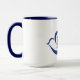 15oz. white mug with blue trim and handle with blue dove with Greek letter Sigma inside.