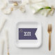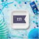 This distinguished design proudly showcases the official flag of Sigma Pi Fraternity. The flag features a rich purple background, symbolizing loyalty and commitment. In its upper left corner, a striking arrangement of ten golden stars forms a triangular constellation, representing key principles. At the heart of the flag, the bold Greek letters Sigma (Σ) and Pi (Π) are prominently displayed in white, creating a strong and recognizable symbol for the organization. The flag's right edge is distinctively shaped with a white swallowtail, embodying the enduring spirit and identity of Sigma Pi.
