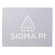 This distinguished design proudly showcases the official logo of Sigma Pi Fraternity. It features the bold "SIGMA PI" wordmark prominently displayed. Above the wordmark, a powerful triangular emblem contains a constellation of ten stars, framed by a triangle outline. Subtle lines and a plus sign underscore the triangle, adding to the symbolic depth. This striking design embodies the enduring spirit and identity of Sigma Pi Fraternity, making it a recognizable symbol for members and supporters.