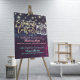 Signature Cocktail Drink Menu Wedding Decor Sign Poster Templates - Elegant Mason Jar & Vintage String Lights on Purple Sparkle Bokeh Lights Background.