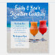 Signature drinks foam board sign for a wedding reception. Frosty drinks on beach sand is the background for custom text. List the couple’s drinks of choice in blue text over a white panel. Bold, white text at the top for a title such as, “Couples names Signature Cocktails”. Sign size is 15x18 inches and can be hung on a wall or displayed as you choose.