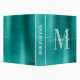 Signature Monogram Aqua Teal Shimmer Foil 3 Ring Binder