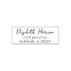Return address stamp featuring your name in a signature-like script and your address in simple modern italic typography.