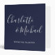 Elegant signature navy blue wedding planner personalized with signature style names. Designed by Thisisnotme©