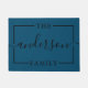 Signature Script Personalized NavyModern Family Name Doormat. This elegant design is the perfect housewarming gift for newlyweds or new homeowners. Trendy hand lettered script is paired with a serif font for a rustic look.