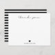 Chic and trendy signature script "thank you", heart accent and template text line for your name. Back of card features coordinating black and white stripe pattern.