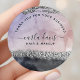 Signature Script Watercolor Purple Black Silver Classic Round Sticker. Perfect for a beauty salon, hair stylist, makeup artist, or cosmetologist.