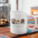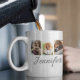 The Signature Strip Collage mug presents a triple photo strip layout displayed on a clean white base, featuring three rectangular snapshots with flowing script text beneath. This design blends image and name details into a structured collage perfect for daily drinkware.