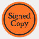 Signed copy Book promotional stickers with the text "signed copy" surrounded by a white border on a simple background. Bold, minimalist and modern font and design.