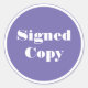 Signed copy Book signing stickers with the text "signed copy" surrounded by a white border on a purple background. Bold, minimalist and modern font and design.