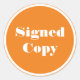 Signed copy Book signing stickers with the text "signed copy" surrounded by a white border on a orange background. Bold, minimalist and modern font and design.