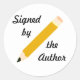 A sticker label to indicate a book, magazine, article, photo, etc., has an author's / illustrator's/ artist's/ photographer's autograph / signature.