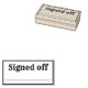 Signed Off office rubber stamp. Business rubber stamp. Job Signed Off. Add signature, Sign here please. Signature required.