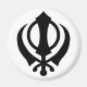 This design features the khanda (in Punjabi, ਖੰਡਾ, khaṇḍā), which is a symbol of Sikhism, a traditional religion of India that now has followers around the world. The symbol reached its current form around the first decade of the 20th century.