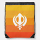 Backpack with a stylish block color graphic design featuring the Sikh Khanda symbol.