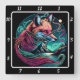 Perched high above the towering mountains, this stunning fox display captures the essence of the wilderness. Set against a deep black background, the vibrant neon-inspired hues illuminate the fox as it watches over the vast, untamed landscape.
