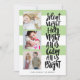 Silent Night three photo holidays Christmas Green Invitation