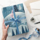 A quiet, tranquil snowy scene featuring multiple shades of blues and greys that capture the quiet of the winter nights.