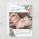 Two Photo Holiday Birth Announcement card which you can further personalize with baby's name, birth stats, your christmas wishes and names. Combining festive fun with traditional watercolor, this is a delicate and elegant design to frame your baby's pictures. The wording reads "we traded in our silent nights for a bundle of joy with ten mistle toes" in casual hand lettering and modern typography. The theme is complete with trailing winter berries and foliage, pine and holly. The back of the card says "best gift ever", with your second photo and custom messages.