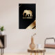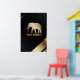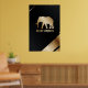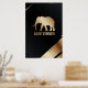 This luxury minimalist art print features a striking golden elephant silhouette on a deep black background. A symbol of wisdom, strength, and elegant resilience.