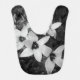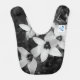 A black and white baby bib featuring a delicate floral design in a soft monochrome style. The gentle contrast of light petals and darker background creates a calm, elegant look that stands out while remaining subtle and timeless. Printed on both sides, the design adds a unique aesthetic touch to everyday feeding time. Perfect for parents who appreciate minimalist style, floral motifs, and neutral baby accessories.