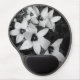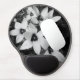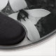 A black and white mouse pad with a built-in wrist rest, featuring a delicate floral design in a soft monochrome style.