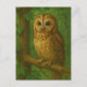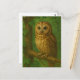 his artwork depicts a tawny owl perched gracefully on a tree branch within a lush green forest. Its round, dark eyes and feathered facial disk give it a calm yet mysterious presence. The detailed brown and cream plumage blends beautifully with the natural surroundings, highlighting the owl’s role as a master of camouflage and a quiet observer of the woodland.