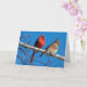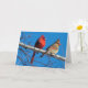 A blank inside greeting card featuring a photo of a male and a female cardinal perched on a birch branch.