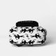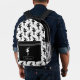 This backpack features a pattern of a black silhouette ballerina on a white background for the main body. The pocket, however, is black with one single white dancer, and your name in white on a black banner beneath the image. The top of the bag is also solid black, making a nice modern contrast.