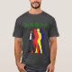 My 11 yo wore adult XL (5’7” 165#). The 8yo is small framed. She wore adult small and tied it in the back. Grandma wore adult large with long sleeve shirt underneath. Tall girl adult medium. Dark haired male adult large. Good quality dark Heather gray, Gildan brand shirt. -it was next up from basic choice and cost about $20 per shirt. Not too thick or thin. Washed and dried well, no major shrinkage. Not see-through. Can wear a bra under it fine. Screen print is just as shown and well done, front and back.