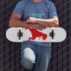 Silhouette illustration of a tyrannosaurus rex skateboard