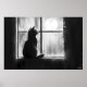 A captivating black-and-white artwork depicting a cat gazing through a window, silhouetted against the full moon. The minimalist design and soft shading evoke a peaceful, contemplative mood, making this piece perfect for animal lovers and fans of serene, night-themed art. Ideal for adding a tranquil touch to any space, especially for those who appreciate the beauty of cats and the allure of the night.