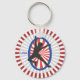 This design features a silhouette of an ice skater doing a pose. The skater has an oval shaped backround in colors of red, blue and white. A white and red circle was added to the design. USA was printed on the design. This design is features on several different keychains.