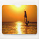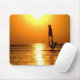 Silhouette of a windsurfer on waves of a gulf on a sunset