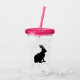 This acrylic drink tumbler with straw and lid has a silhouette of a sitting black rabbit's side profile on the front and back.