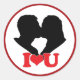 Silhouette of Couple Kissing With "I♥U" Classic Round Sticker