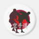 Silhouette of Karate fight, red circle background. Magnet