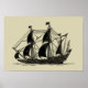 Silhouette of Ship with Billowing Sails Poster