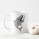 Start your day with a splash of creativity. This mug showcases a whale silhouette, crafted from a school of small fish. There’s a trail of fish swimming right into the whale’s mouth, giving the design a sense of movement. It’s the perfect gift for sea life fans, coffee lovers, and anyone who appreciates a little underwater magic with their morning brew.