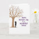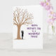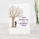 This card opens on a white background that keeps the scene airy and focused. On the left, a tall tree with many bare, sweeping branches reaches upward, sprinkled with small pink blossoms that feel like early spring 🌼. Beneath the branches, a black silhouette shows a woman holding a young child close, her curved stance and the child’s tucked-in pose suggesting a gentle, trusting bond ❤️. The figures sit low on the page, anchored under the tree as if sheltered by its canopy. On the right side, the message is set in purple lettering, with “HAPPY MOTHER’S DAY” placed above “To a Wonderfull Friend.” The text is arranged in a neat stack, leaving plenty of white space between the words and the tree so the eye can move easily across. Tiny pink flowers dot the outer branches, while the dark silhouettes remain solid and smooth against the bright background.