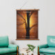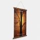 Silhouette tree with a beautiful orange sunset hanging tapestry