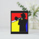 Silhouette trombone player, mondrian style art postcard