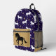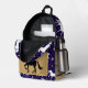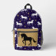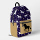 A Blue And Gold Colored Girls Backpack With White Silhouette Unicorns And Black Center Silhouette Unicorn Front Pocket