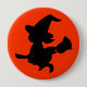 Cute, silhouette of a witch is featured on this button pin for Halloween. Wear yourself or give as a small gift too!