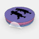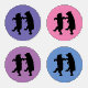 This set of four acrylic coasters have a silhouette image of two black bears holding hands and dancing together on various colored background of purples and pinks.