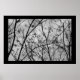 Black and white image. This is a low resolution image for the web, the print you'll get has sharp detail. Silhouettes of tree tops against a cloudy sky. Photography by Minerva Bloom.