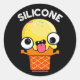 Silicone Funny Ice Cream Cone Pun Dark BG Classic Round Sticker