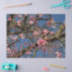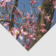 Tissue paper with photo of pink silk floss tree blossom with blue sky behind.